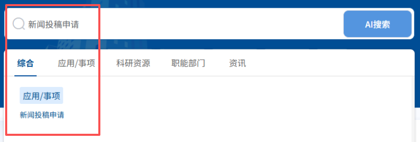 在搜索栏搜索【新闻投稿申请】,点击进入;或者收藏后可在【我的收藏】一栏点击使用。