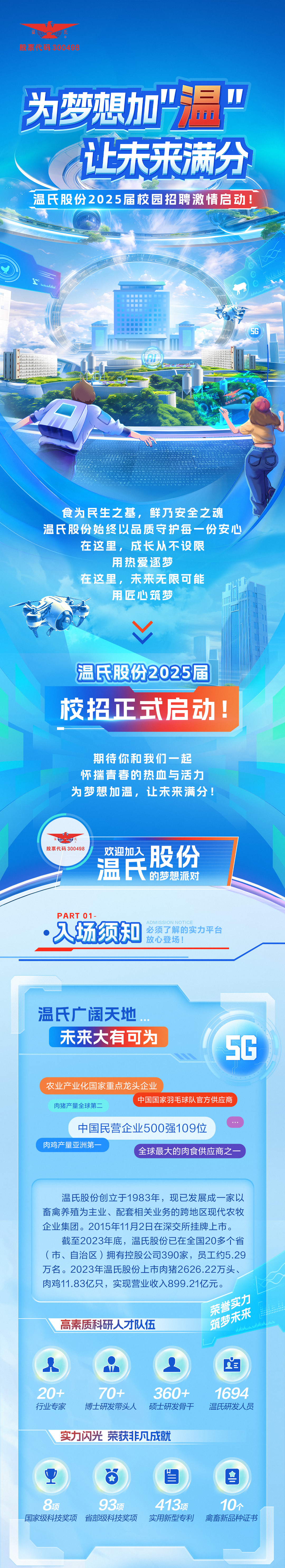 为梦想加“温”,让未来满分|温氏股份2025届校园招聘正式启动!