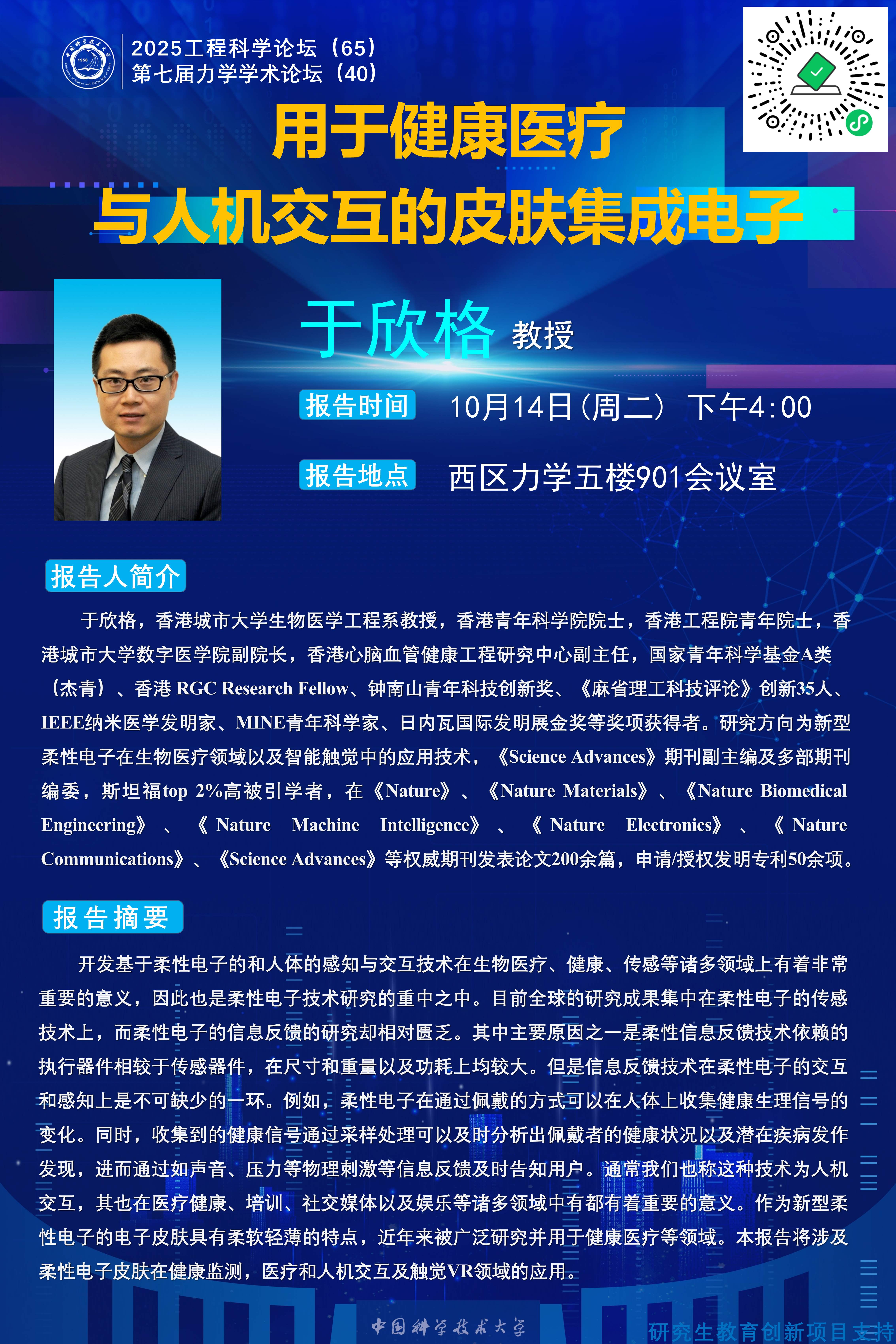2025工程科学论坛(65)“用于健康医疗与人机交互的皮肤集成电子”