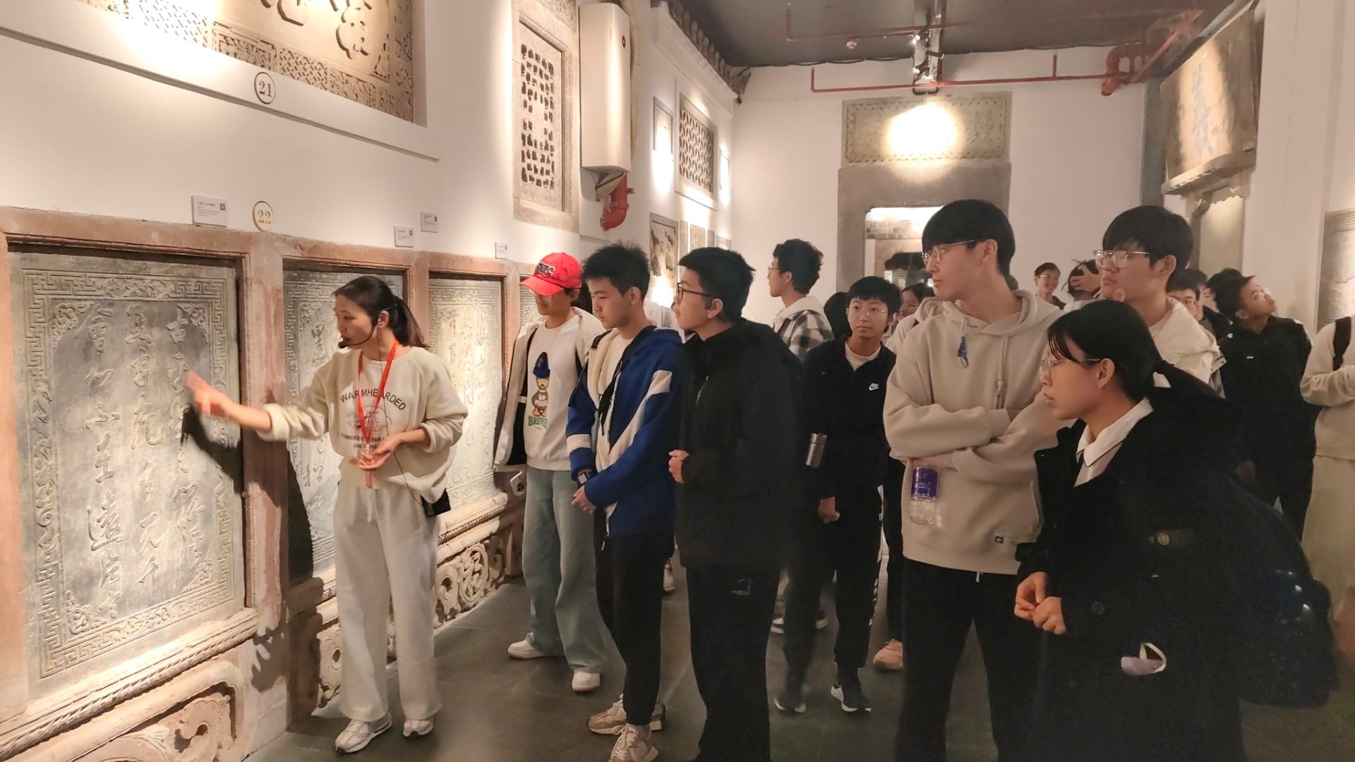 当日下午,师生一行走进秀山门博物馆,在专业讲解中开启一场徽文化沉浸之旅。大家穿梭于各类徽派建筑构件与民俗文物之间,系统了解徽派建筑的形制特色与池州地域历史脉络,品味石雕、木雕、砖雕中蕴含的美好寓意,并深入认识了国家级非物质文化遗产——池州傩戏的丰富内涵。随后,通过动手拼装古建模型、实地登临古城墙等互动环节,同学们在寓教于乐中加深了对传统营造技艺的理解,增强了对中华优秀传统文化的认同与自豪。