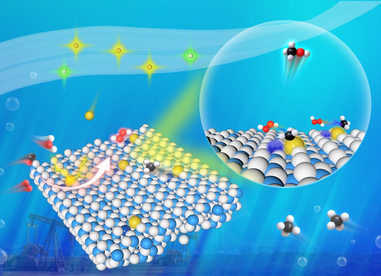 甲烷作为天然气、可燃冰、煤/油层气以及生物天然气等多种资源的主要成分,分布广泛、储量丰富,具有广阔的工业应用前景。在温和条件下将甲烷一步转化制备甲醇,不仅能有效提升能量密度、便于储存运输,还可显著降低环境污染,是推动实现“双碳”目标的重要技术路径。然而,甲烷分子中C-H键非常稳定,存在难以活化及断裂后易发生过氧化的问题,因此开发新型高效催化剂,实现甲烷向甲醇的高选择性转化并有效抑制过氧化反应,已成为推动该过程走向工业应用的关键挑战。