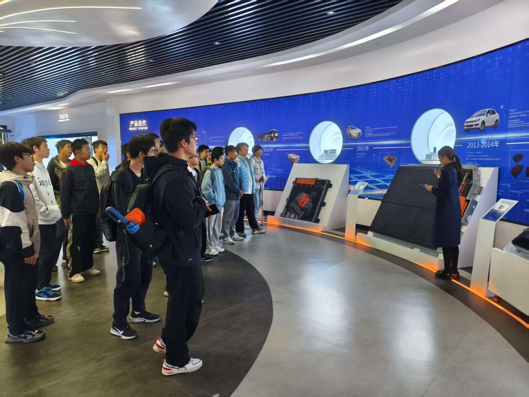师生一行首先参观了国轩高科企业展厅,沉浸式了解企业从起步探索到成长为行业龙头的创新创业历程,切身感受其在动力电池与能源存储等领域取得的多项重大技术突破。“让绿色能源服务人类”的企业使命,通过丰富的展品与生动的讲解,深深印刻在同学们心中。