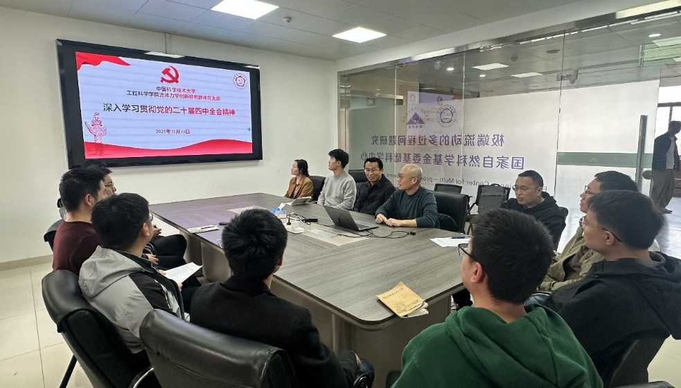 为深入学习贯彻党的二十届四中全会精神,准确把握《中共中央关于制定国民经济和社会发展第十五个五年规划的建议》的核心要义,11月14日,流体力学创新研究群体党支部召开专题学习会,集中学习领会全会精神与“十五五”规划部署要求。