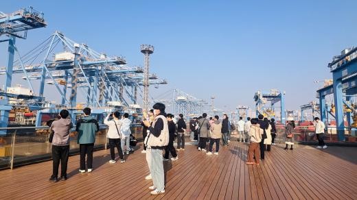 11月22日至23日,师生们奔赴青岛,开启了一段融合专业实践与思政教育的“海洋之旅”。在山东港口青岛港自动化码头,同学们目睹了无人集卡穿梭、桥吊自动装卸集装箱的高效作业场景。码头工作人员介绍,其核心的智能调度与控制系统均为完全自主研发,实现了从软硬件到系统的全面国产化,展现了“中国智造”在港口领域的领先实力。随后,团队走进中国科学院海洋研究所,登上我国先进的“科学”号海洋科学综合考察船,参观其先进的船载探测系统与实验室,感受国家在深海探索方面的科技力量。在中国人民解放军海军博物馆,同学们通过珍贵的历史文物与现代装备模型,回顾了人民海军向海图强、迈向深蓝的伟大征程。最后,师生们探访了青岛山一战遗址公园,在博物馆与炮台旧址中重温历史,深刻体悟到国家强大与和平的来之不易。