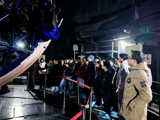 11月15日至16日,师生们首先抵达位于燕山深处的国家天文台兴隆观测基地。在聆听了关于基地建设与天文观测流程的专题报告后,同学们依次参观了施密特望远镜和我国自主研制的2.16米天文光学望远镜,深入了解其光学原理、技术特点及科研贡献。当夜,在澄澈的兴隆夜空下,师生们通过专业望远镜亲身观测银河旋臂等天体,体验了天文实测的严谨与魅力。次日,团队重点参观了郭守敬望远镜(LAMOST)。工作人员详细讲解了其创新的反射施密特改正镜设计、并行可控式光纤定位系统等核心技术。作为国际领先的大口径兼大视场光谱巡天望远镜,LAMOST已获取超过2800万条光谱数据,是我国实现高端科研装备从追赶到跨越的生动例证,令同学们深感震撼。