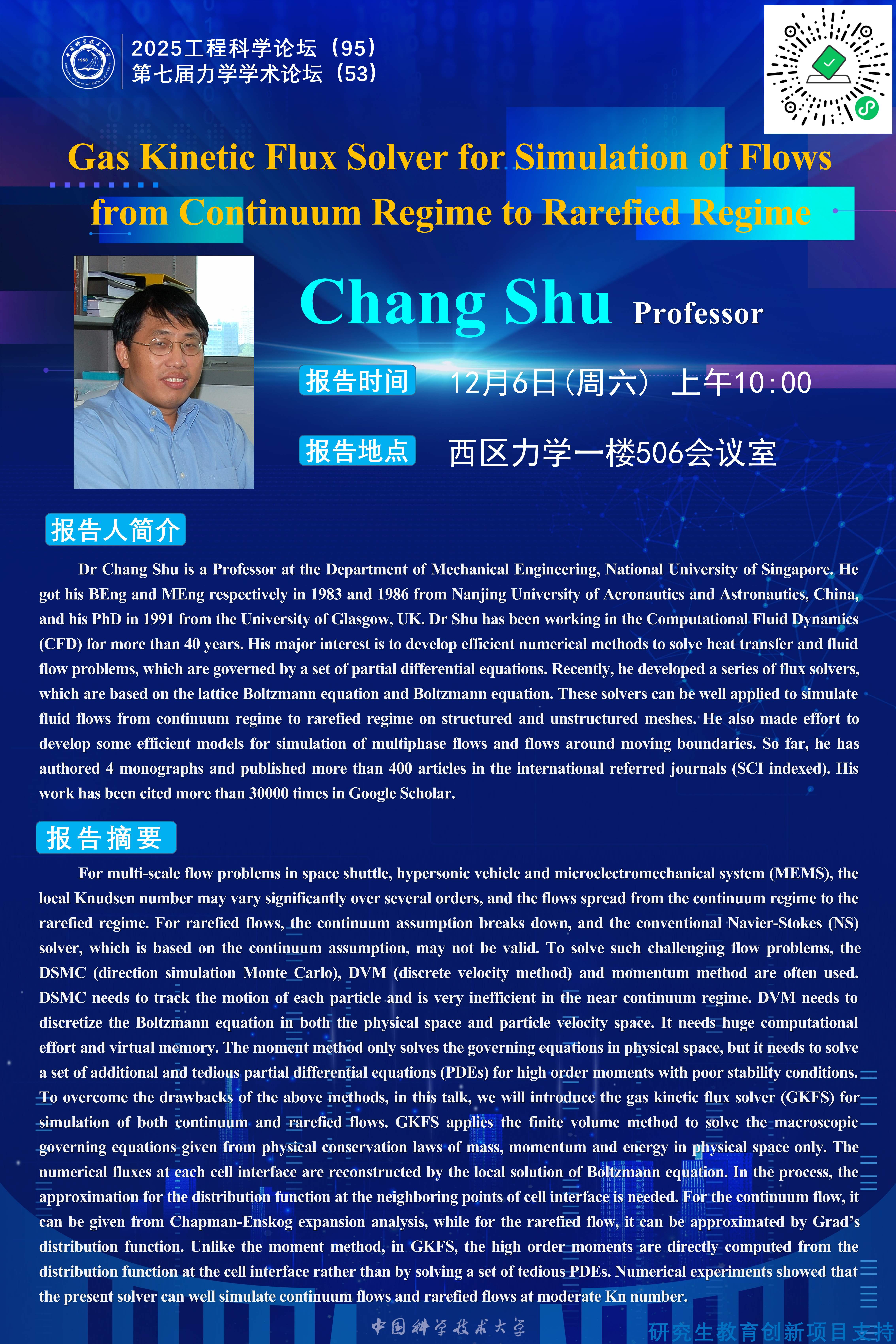 2025工程科学论坛(95)"Gas Kinetic Flux Solver for Simulation of Flows from Continuum Regime to Rarefied Regime"