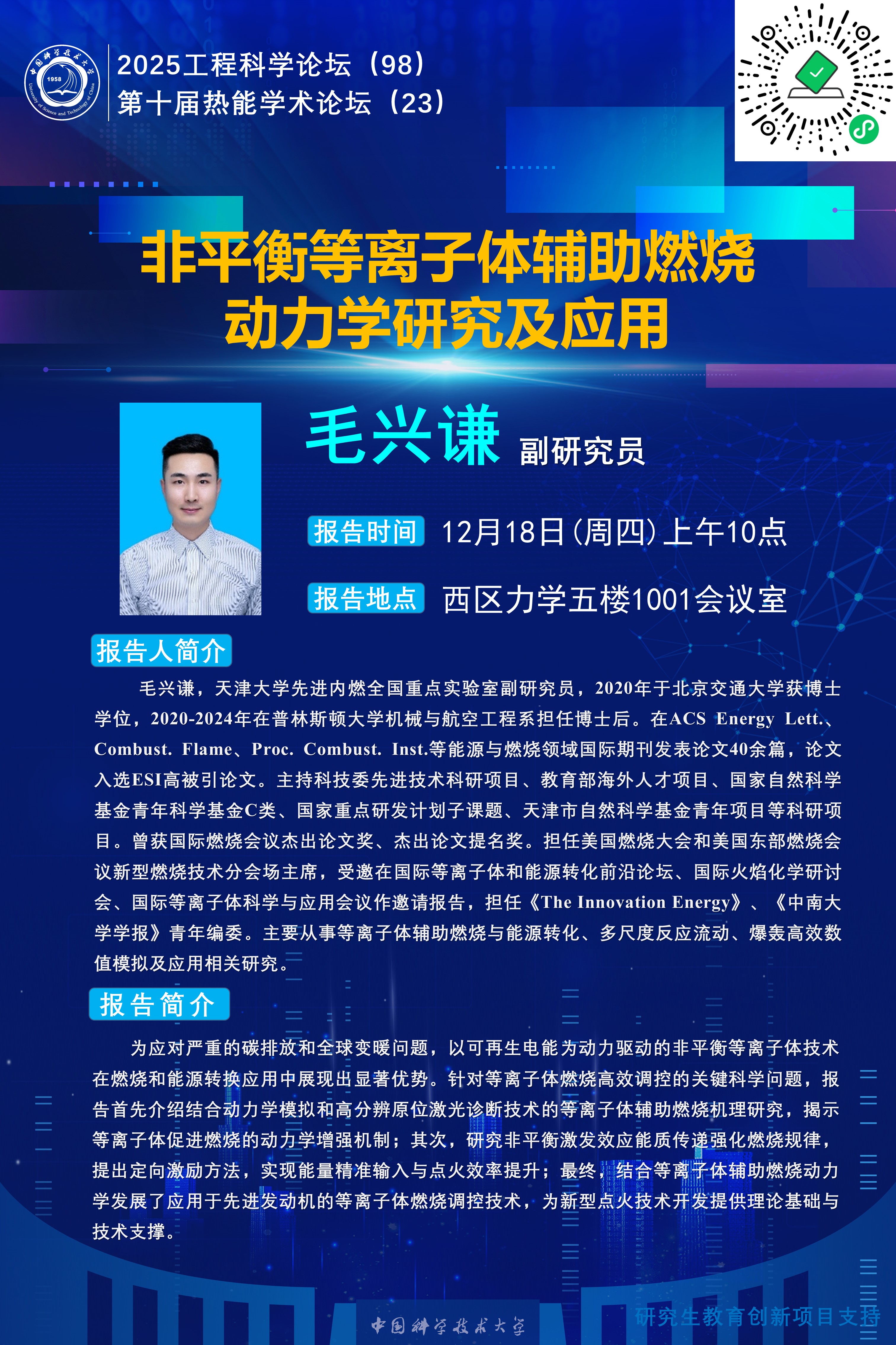 2025工程科学论坛(98)“非平衡等离子体辅助燃烧动力学研究及应用”