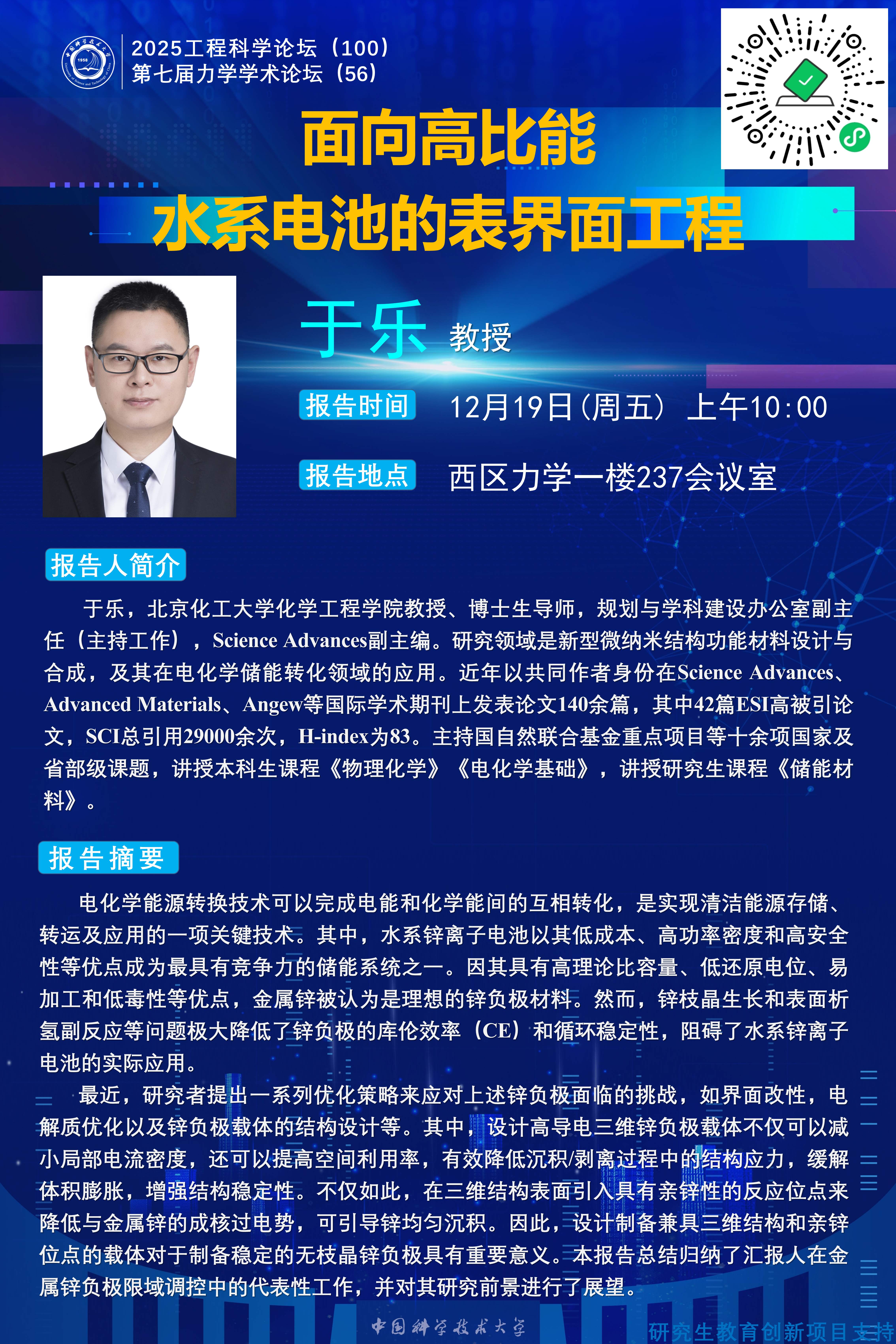 2025工程科学论坛(100)“面向高比能水系电池的表界面工程”
