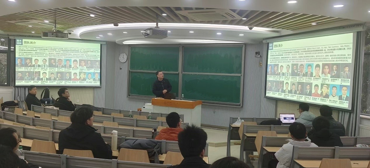 12月24日下午,工程科学学院精密仪器与精密机械系2024级本科班举办人形机器人讲座。本次讲座特邀张世武教授团队的优秀教师代表前来交流,该团队是目前中国科大在具身智能与机器人领域规模最大、研究方向最全面的团队之一。