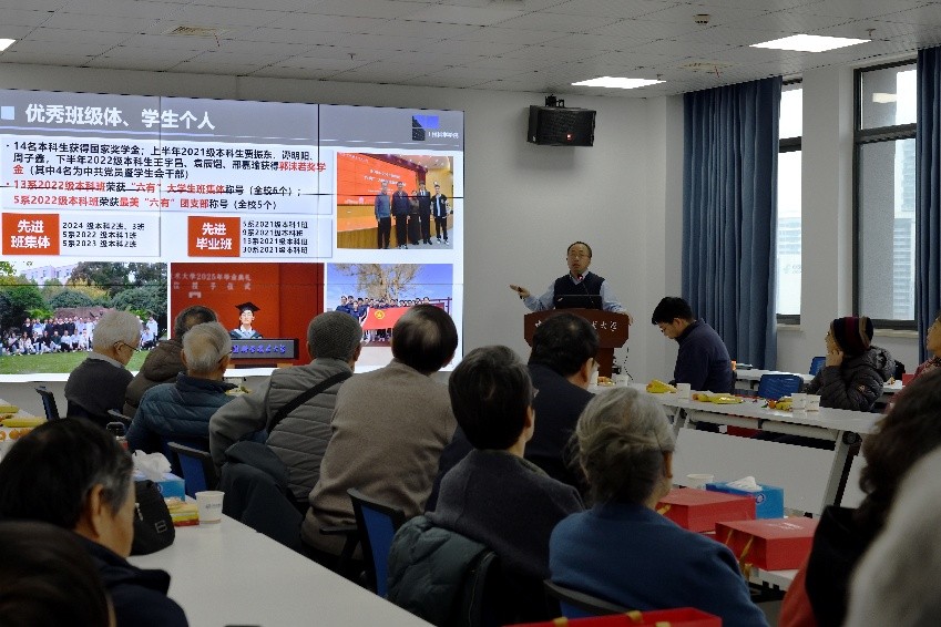 吴恒安向老同志们汇报了学院2025年在师资建设、人才培养、教育教学、科学研究与平台建设等方面取得的新进展与新突破。他表示,学院当前良好的发展态势,凝聚着一代代教职工的智慧与心血,感谢各位老师始终如一的关注与支持。