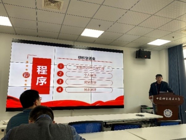 3月25日下午,热科学和能源工程系教工党支部在西区力五楼901会议室召开党员大会,开展树立和践行正确政绩观学习教育专题学习,并召开2025年度组织生活会。会议由支部书记谈鹏主持。