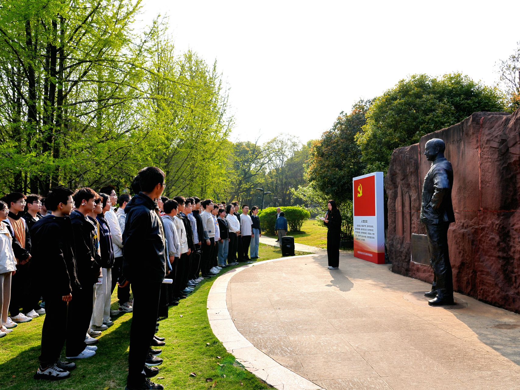 活动在庄严肃穆的氛围中拉开帷幕。全体人员肃立致敬,向钱学森先生雕像致以崇高敬意与深切缅怀。在追思先生爱国奉献、勇攀高峰崇高风范的同时,大家共同重温习近平总书记考察中国科学技术大学时的重要讲话精神,缅怀与学习的交融中,深刻感悟老一辈科学家的家国情怀与新时代青年的使命担当。