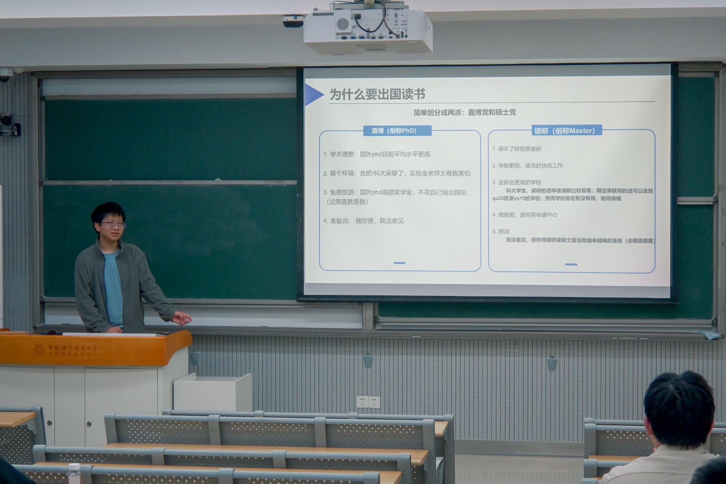 分享过程中,同学们认真聆听、积极思考。分享结束后,活动设置了问答环节,赵书熠面对面为同学们答疑解惑、交流心得,精准回应大家的困惑与疑问。整场分享会内容充实、贴近实际,不仅为有留学深造意愿的同学搭建了交流平台,更提供了极具价值的参考信息与思路启发。
