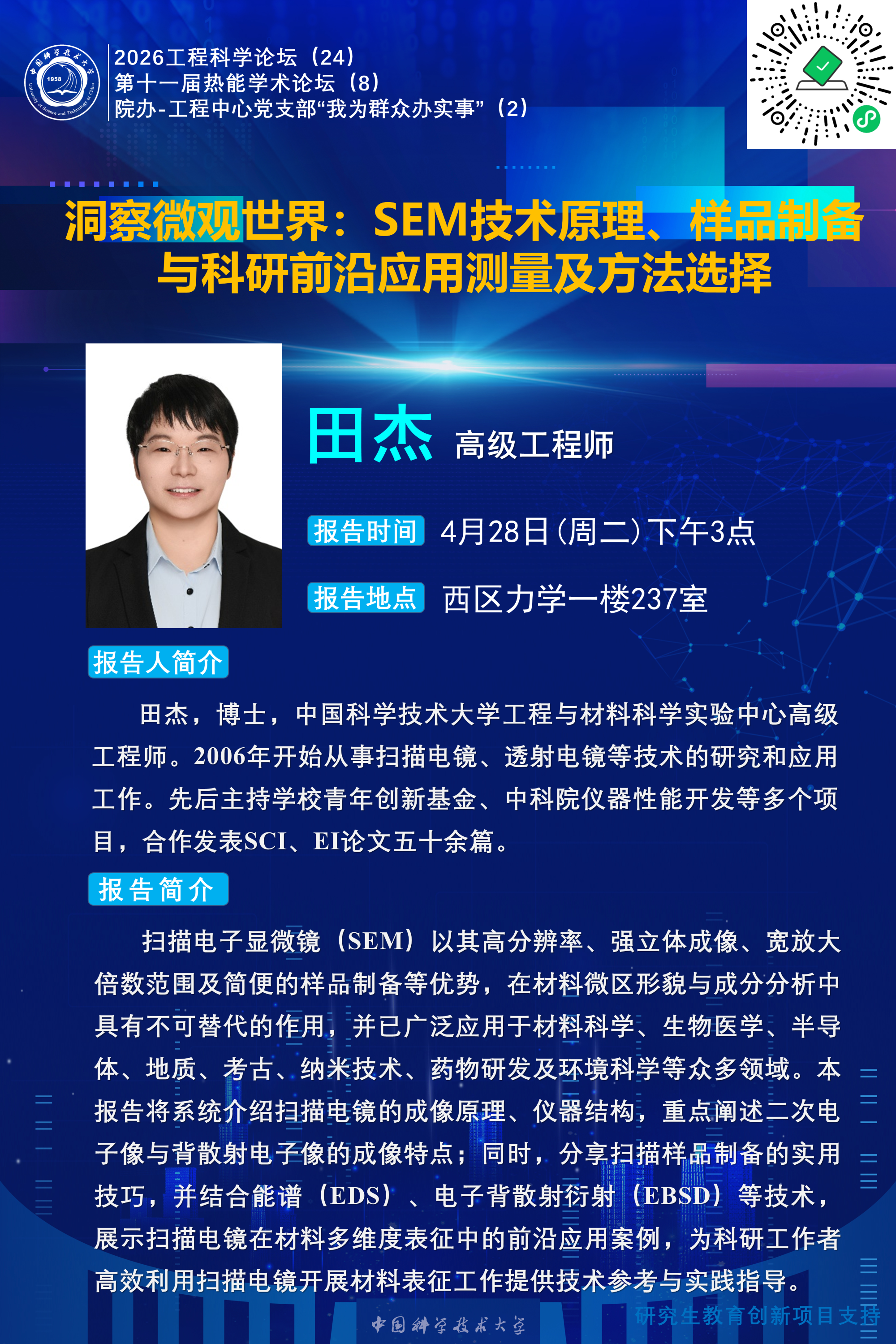 2026工程科学论坛(24)“洞察微观世界:SEM技术原理、样品制备与科研前沿应用测量及方法选择”