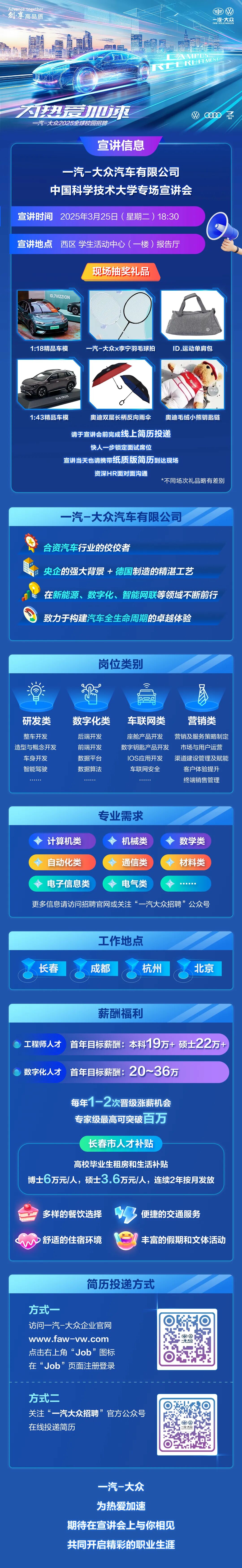 3月25日宣讲|一汽-大众2025春季校园招聘
