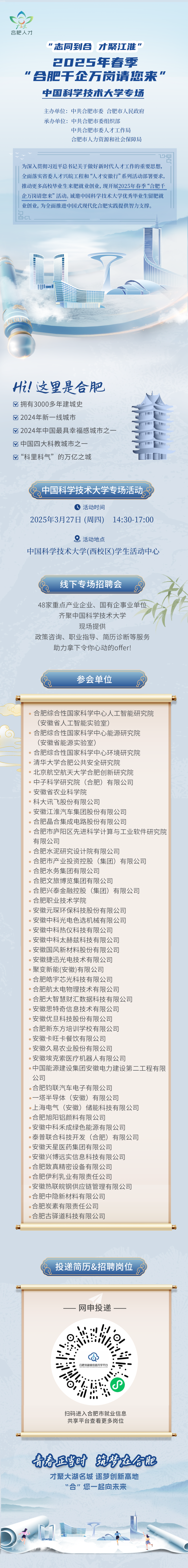 2025年春季“合肥千企万岗请您来”中国科学技术大学专场招聘会(48家单位)