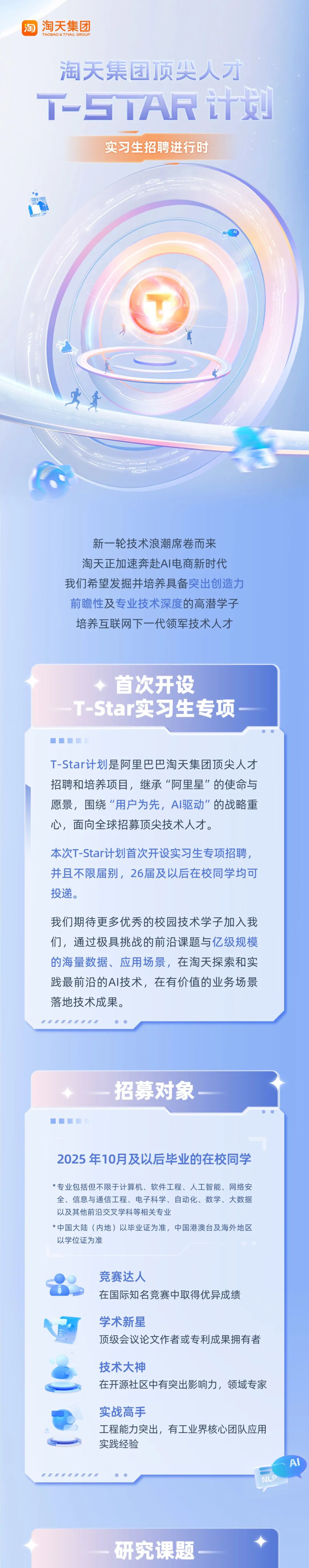 淘天集团顶尖人才T-Star计划实习专项等你加入!
