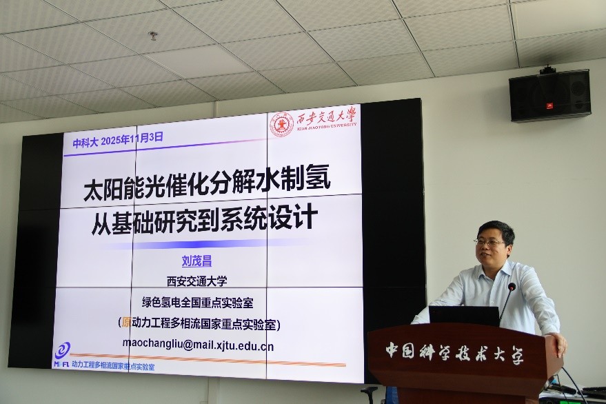 11月3日下午,西安交通大学刘茂昌教授受邀在西区力学五楼901会议室为我院师生做学术报告,报告题目为“太阳能光催化分解水制氢:从基础研究到系统设计”。报告会由热科学和能源工程系副主任李桂强特任教授主持。
