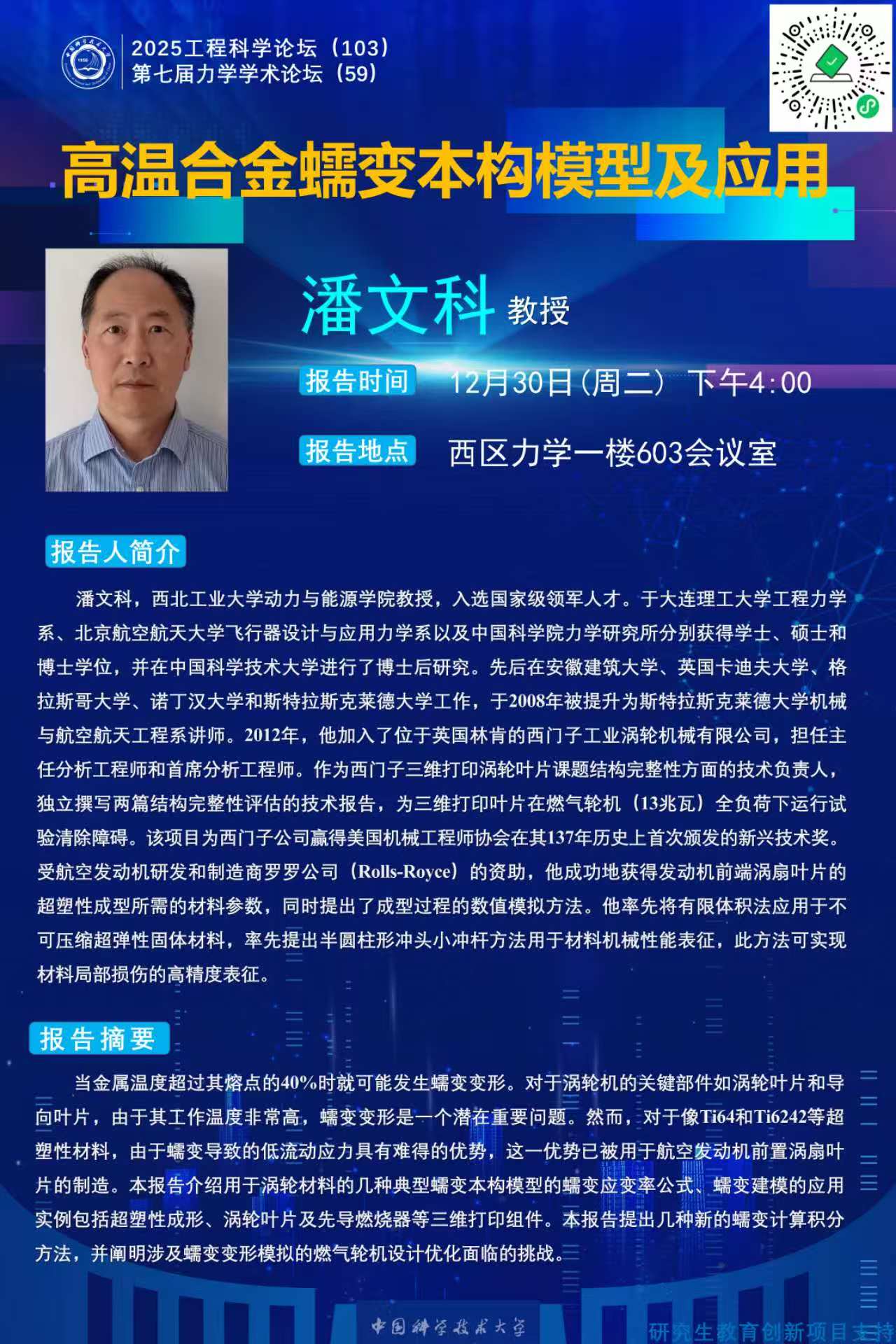 2025工程科学论坛(103)“高温合金蠕变本构模型及应用”