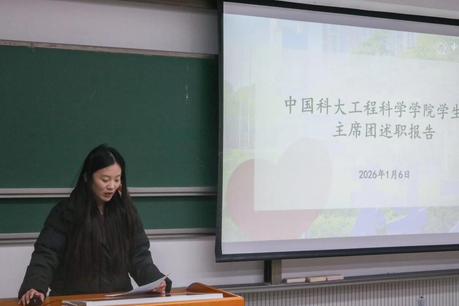 1月6日晚,2025至2026学年秋季学期工程科学学院学生会述职总结大会在3C104教室召开。院党委副书记牟玲,院团委书记蒋小榕、副书记樊洋洋、学生副书记杨硕,主席团成员和各部门部长及全体干事参加了会议。会议由主席团成员赵梓超主持。
