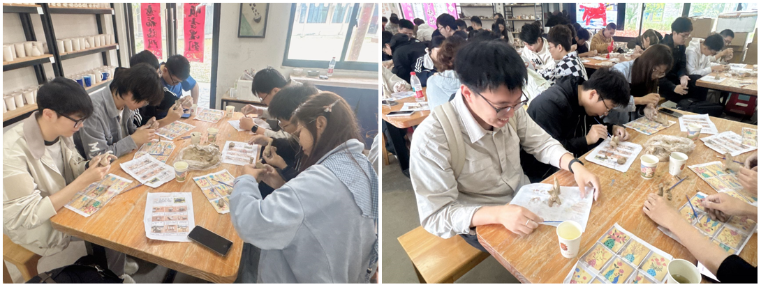 随后,支部一行前往马郢村,先后观看乡村振兴专题宣传片,参观村史馆及创客工坊,系统了解马郢村从省级贫困村转型发展为“全国乡村旅游重点村”的实践路径与发展成果。通过实地调研与现场学习,党员们深切体会到党建引领在乡村振兴中的关键作用。在“党建铸初心,巧手塑‘良驹’”实践环节中,大家以陶艺泥塑创作为载体,在动手体验中感悟工匠精神,增强支部凝聚力与向心力。
